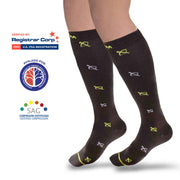 Medias de compresión mediana con diseño moderno. Recomendadas para el control y tratamiento de vena varice. Reducen el dolor de piernas y mejoran la circulación.